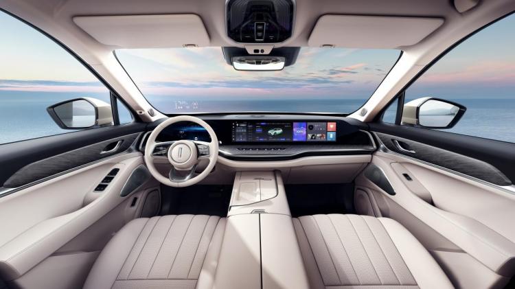 内饰方面,蓝山DHT-PHEV前排中控台清爽、简约,主要以三联屏组成的一整块面板为主体,下方是隐藏式电动智能空调、泊车影像控制区域,凸显出科技带来的高级感。