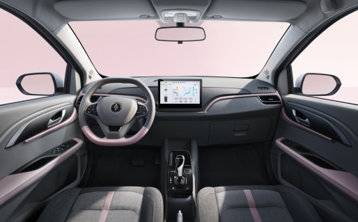 车内座舱设计让人感到温馨舒适,樱花粉与深灰色的拼色搭配,清新又暖心。平顶平底的方圆形方向盘视觉惊艳,更方便驾驶者进出,实用性极佳。10.1英寸悬浮式中控屏信息丰富,集成车速显示等功能,让驾驶者在行车过程中无需低头观察仪表,提高了行车安全。
