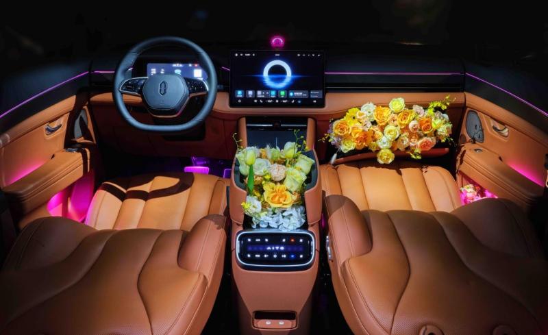 在内饰方面,问界新M7 Max焕新版同样不遑多让。它搭载了全新星环散射体,支持空间音频功能,为乘客带来更加震撼的音响效果。同时,星环散射体还可与氛围灯联动,实现交互的仪式感;在听音乐时,氛围灯会随音乐进行律动,为车内人员带来视觉与声觉上的极致享受。
