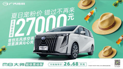 暑期将至,消夏出游正当时,广汽传祺7月份特别推出“夏日宠粉价”,开启盛大的购车狂欢。现在购买传祺M8系列车型,包括领秀、大师和宗师,在国家以旧换新补贴7000元的基础上,传祺还额外加码至高2万元的置换补贴,综合权益至高可达27000元。而购买传祺M8大师超级混动版,消费者还可以在此基础上享受首任车主三电终身质保(非营运车辆)和流量礼。奢华出行,触手可及!