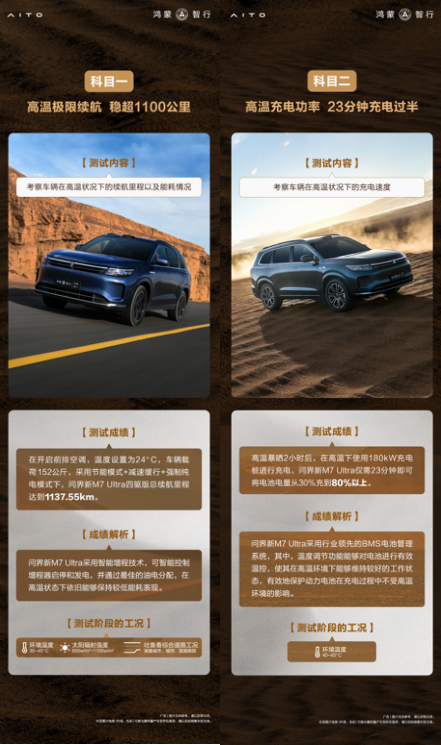 以高温续航为例,问界新M7 Ultra在吐鲁番最高气温46.3℃极热环境下,综合续航里程达到1137.55km,而其官方WLTC工况续航里程为1050km,可见实测成绩甚至好于官方成绩,出现了“反向虚标”的情况。问界新M7 Ultra采用智能增程技术,可智能控制增程器启停和发电,并通过最佳的油电分配,实现了高温状态下的较低能耗表现,让暑期亲子长途自驾游更加从容。