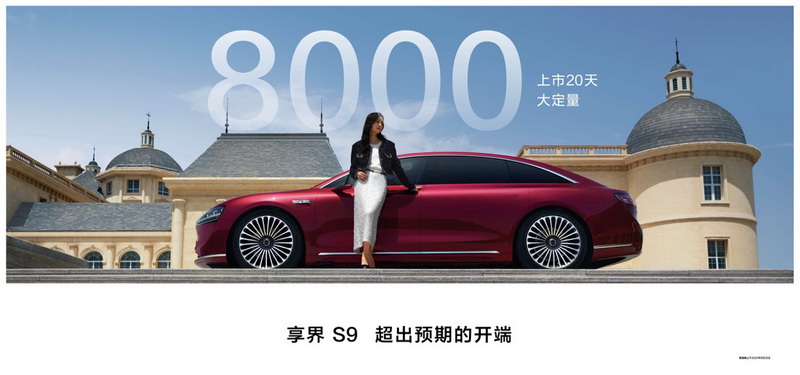 发布会上,余承东表示全景智慧旗舰轿车享界S9上市20天大定量破8000台,深受消费者认可,取得了超出预期的开端成绩。