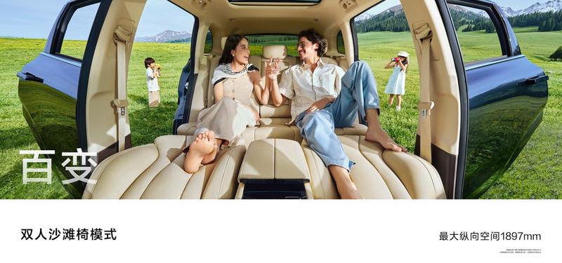 空间灵活性方面,问界新M7 Pro前排座椅靠背可向后放倒69°,形成双人小憩模式。拆除前排座椅头枕,与后排坐垫对接后最大纵向空间1897mm,实现双人轻松躺平的沙滩椅模式。一排、二排座椅还可组合3m×1.5m极致大空间,实现大平层模式。