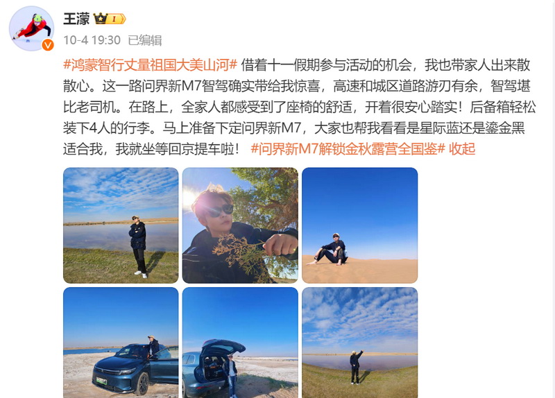 另外值得一提的是,经过此次环国境线活动后,问界新M7的产品力也得到了进一步呈现。奥运冠军王濛在参与此次活动后,更是对问界新M7青睐有加,并表示准备下定,成为了问界M7系列的20万用户之一。王濛的影响力也进一步推动了问界新M7在公众中的知名度,进一步吸引更多潜在用户,让问界M7的销量有望继续保持强劲的增长势头,进一步巩固其在新势力车型销量排行榜的领先地位,为更多用户提供更优质、便捷、安全的出行体验。