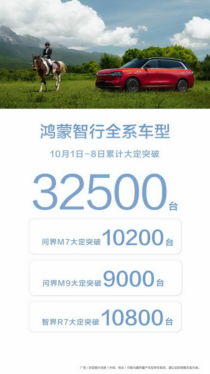 同期,问界新M7系列也再次赢得了市场和用户的广泛好评,并迎来了新一波销售热潮。鸿蒙智行官方数据显示,从10月1日至8日,问界新M7的大定量突破10200台,成为众多家庭的首选车型。