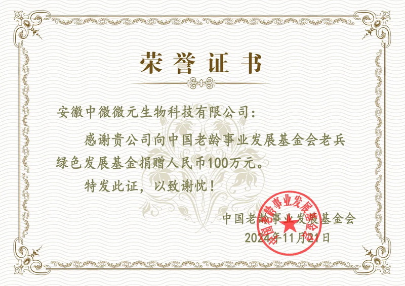 戎装虽卸,军魂永驻;军民同心,共谱新篇。2024年11月23日下午,一场庄重而热烈的盛会在中国北京华夏之声演播厅隆重举行,这便是《老兵跟党走 欢喜过大年》2025退役军人春节联欢晚会启动仪式暨发布会。安徽中微微元生物科技有限公司董事长高倩女士作为特邀嘉宾出席,并现场向中国老龄事业发展基金会老兵绿色发展基金捐赠了100万元现金及价值30万元的产品,以实际行动表达了对老兵们的深切关怀与支持。