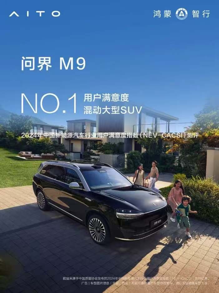 2024年12月4日,2024年中国新能源汽车行业用户满意度指数(NEV-CACSI)测评结果揭晓,问界M9获得混动大型SUV用户满意度第一名,问界M7获得混动中大型SUV用户满意度第一名,问界M5获得纯电动中型SUV感知质量第一名,问界系列车型以实力赢得用户口碑。