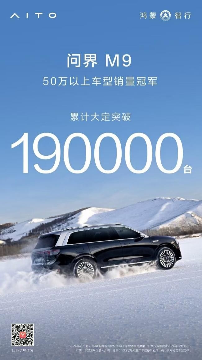 奥运赛场上,中国运动员奋力拼搏,力争金牌榜首位,展现中国体育的雄厚实力与拼搏精神。而在汽车领域,问界也通过每一款产品、每一次创新,不断刷新行业纪录,赢得了近50万用户的认可与喜爱。其中,全景智慧旗舰SUV问界M9上市11个多月累计大定突破19万辆,连续8个月蝉联50万以上车型销量冠军,改写了中国高端汽车市场新格局;国民SUV问界新M7连续12个月累计销量蝉联新势力第一,2024年累计交付量突破19万台,再创中国新能源豪华品牌新纪录。