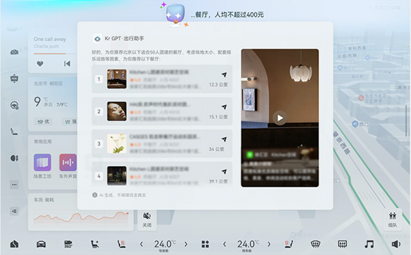 ZEEKR OTA 6.3在实用性方面也进行了诸多优化和创新。基于Kr AI大模型能力,Eva化身出行助手,用户只需对Eva说出需求,如“推荐下适合20人团建的餐厅”,Eva就能迅速提供相关信息,并支持导航和收藏功能。从此,日常出行有了“新秘书”,生活大小事都能帮忙轻松搞定。
