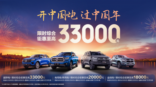 为了感谢广大粉丝长期以来的支持和关爱,长城炮新春钜惠活动已全面开启,即日起至2月28日,购买长城炮旗下车型即可尊享限时综合钜惠至高33000元。