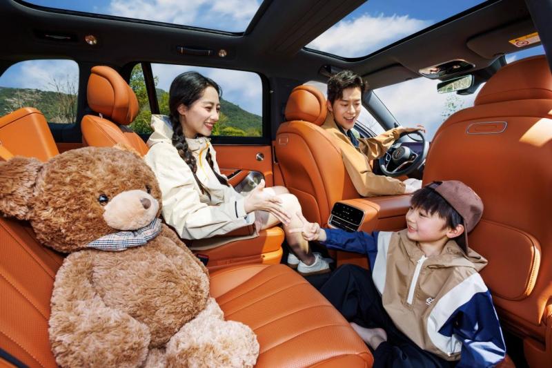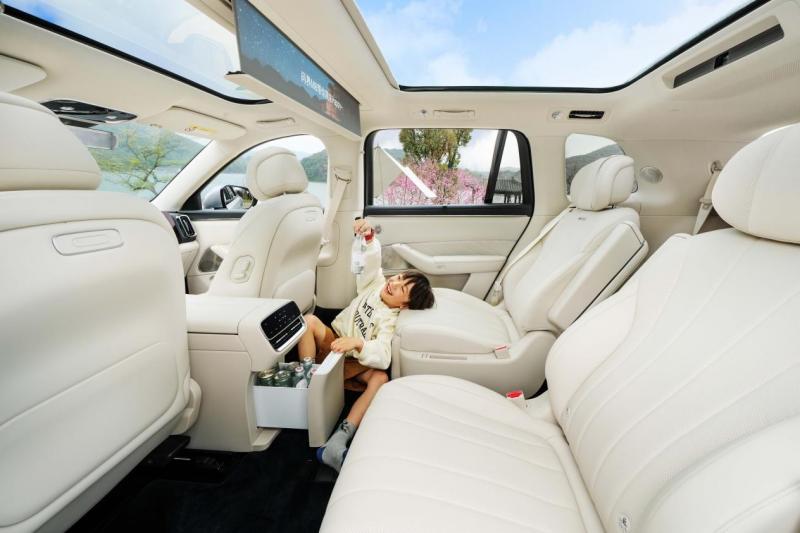 在储物能力上,六座版全车有41处储物空间,后备箱常规容积353L,放倒三排座椅后可拓展至1284L,还有39L暗格;五座版标准容积976L,二排放倒后拓展至2348L,可容纳冲浪板或折叠自行车。二排还配有9L百宝箱,可以装纸尿裤、游戏手柄等零碎物品。此外,六座版的零重力座椅3.0,二排右侧座椅一键展开121°零压姿态,集成加热、通风、按摩功能于一体,和五座版的“皇后座椅”, 通过腿托联动副驾芭蕾折叠座椅,构建L型沙发,为乘客带来极致舒适的乘坐感受。