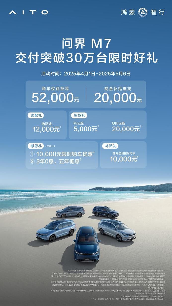 至高享52000元限时购车权益 “国民SUV”问界新M7推出限时好礼