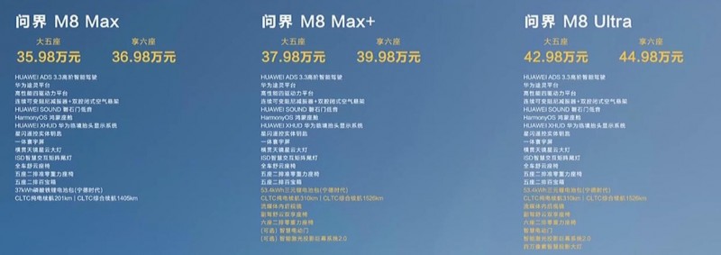 “又大又气派”的问界M8,在颜值和空间上,能满足至少九成消费者购车的潜在需求。而它充满诚意的产品线布局,则打消了摇摆用户的最后一丝顾虑,心情通透,,最终果断下定。时间已经到了2025年,先行者们用真金白银验证了一个真理——“复杂的产品SKU只会增加消费者的焦虑”。问界M8的产品规划异常清爽,简单几句话就能概括。MAX、MAX+、Ultra三款,每款分为五座、六座两个车型,不考虑座位数,实际只有3个SUK,简单清晰明了。