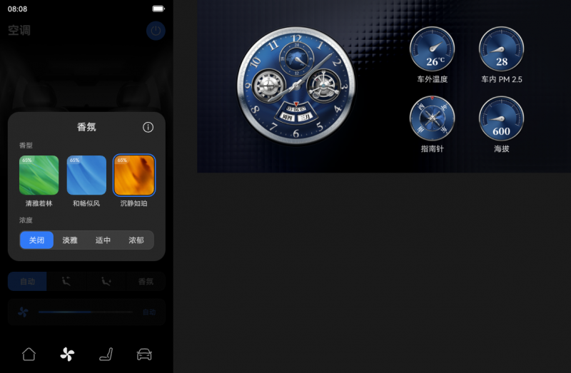 后排乘客的体验也得到显著提升。2025款问界M9的后排控制屏新增实况屏保功能,实时显示时钟、车外温度、车内PM2.5等10余项行车信息。香氛系统与智能隐私车窗的调节权限下放至后排,配合悬浮窗显示的导航进度,打造出堪比豪华座舱的尊享体验。