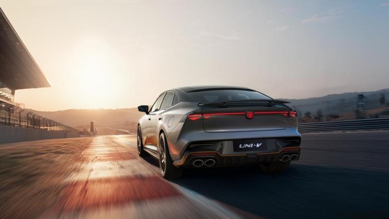 型格进化,驭风而行: 新车延续了UNI-V标志性的低趴轿跑姿态,风阻系数进一步降低至出色的0.27Cd。全系标配同级独有的智能电动掀背尾门和随速升降电动尾翼,兼具实用性与战斗气息。