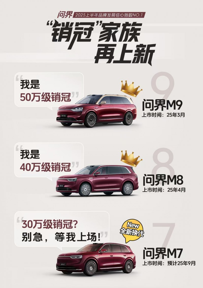秉持“智慧重塑豪华”的理念,问界为超过70万用户提供高端智能电动汽车产品和智慧出行解决方案,重塑了中国豪华车市场格局。即将到来的全新问界M7凭借高颜值、年轻化设计和更家族化的外观,有望延续“销量神话”,成为引爆市场的又一爆款车型,敬请期待!
