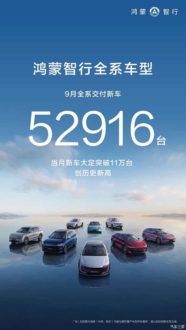 作为了解,今年9月,鸿蒙智行全系共交付新车52916台,全系累计交付突破95万台;同时9月获得大定11万台,创历史新高。