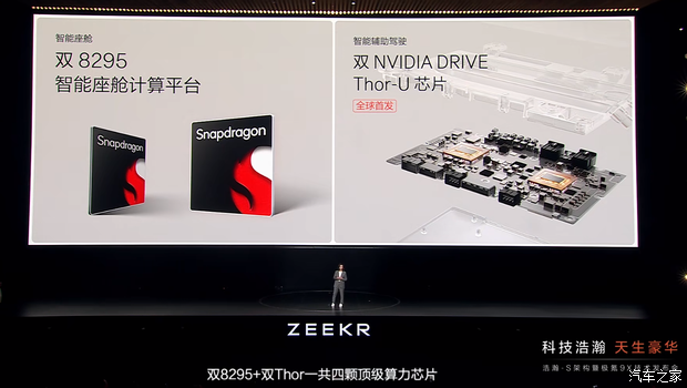 随后,极氪科技副总裁、智能驾驶负责人陈奇介绍了极氪科技在智能驾驶辅助领域的最新进展。首先是千里浩瀚H7全场景智能辅助驾驶系统,其为极氪9X带来了L2级智驾(辅助)的终极能力——无图园区漫游。同时,发布了面向L3级的智能辅助驾驶解决方案——千里浩瀚H9,硬件方面依靠双英伟达Thor-U芯片,算力达到1400TOPS。此外,极氪全球首发了520线长距激光雷达,在300米外也能精准识别0.75X0.75米物体。
