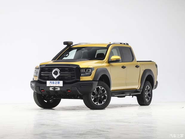 车身侧面,新车采用了双排座设计,并配备宽厚的前后轮眉与翼子板,且形成了宽体的视觉效果。同时车顶行李架以及龙门架等配置则提升了整车的越野氛围。新车还配备18英寸轮圈采用花瓣式造型。