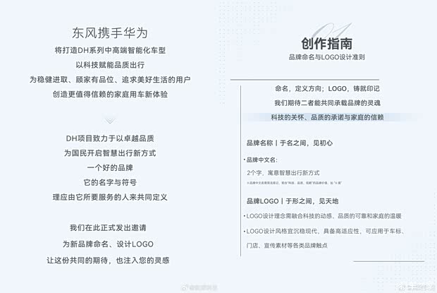 东风/华为联合打造全新品牌 东风DH项目中文名+LOGO征集活动