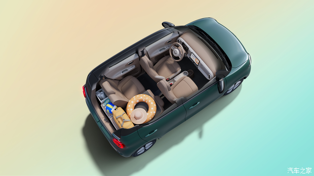 车内采用怀挡搭配多功能方向盘。10.1英寸高清中控大屏使用全新萌趣UI设计,集成空调调节、四种场景模式、预约充电等多种实用功能,下滑即可打开控制中心使用高频功能,未来通过OTA可实现CarPlay、HiCar、CarLink三种手机互联方式。此外更是支持手机APP远程控制、无感进入/启动、智能上下电等功能。全车座舱拥有20处实用储物空间,后备厢最大可拓展至838L。