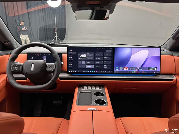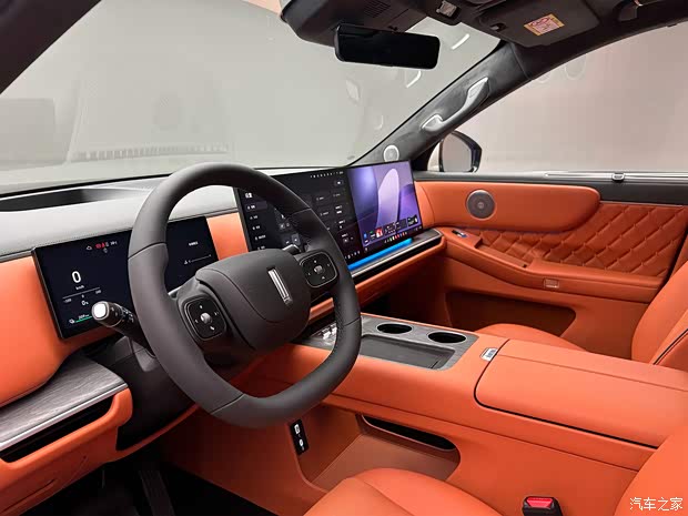 内饰方面,该车采用当下新能源主流的设计风格,窄条式全液晶仪表搭配大尺寸悬浮式中控屏+同尺寸的副驾娱乐屏组成的一体式连屏,搭配车辆多处的木纹饰板元素,整体有着不错的高级感。同时,其空调出风口采用贯穿式样式,配合环抱式座舱造型,视觉层次感得到很好地提升。